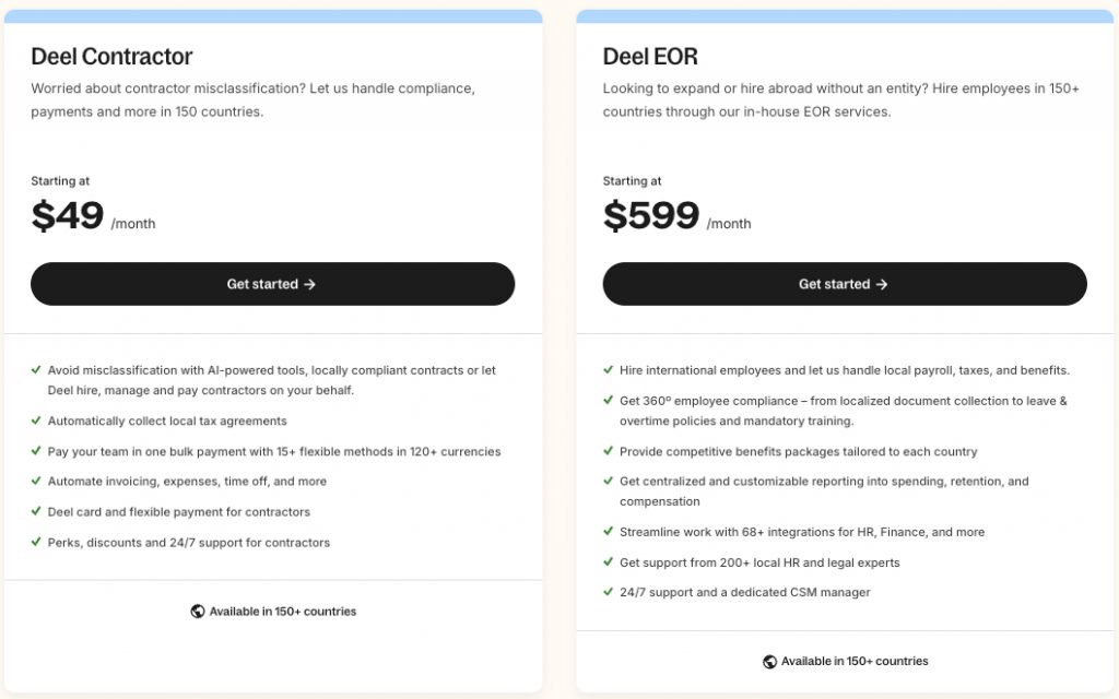 Deel really stands out for its global reach and super intuitive platform. Itâs built for speed and simplicity, making it a great option if you want to onboard, pay, and stay compliant across multiple regions without a ton of friction. Itâs especially strong if you’re okay with investing a bit more for access to a wide range of features and integrations.